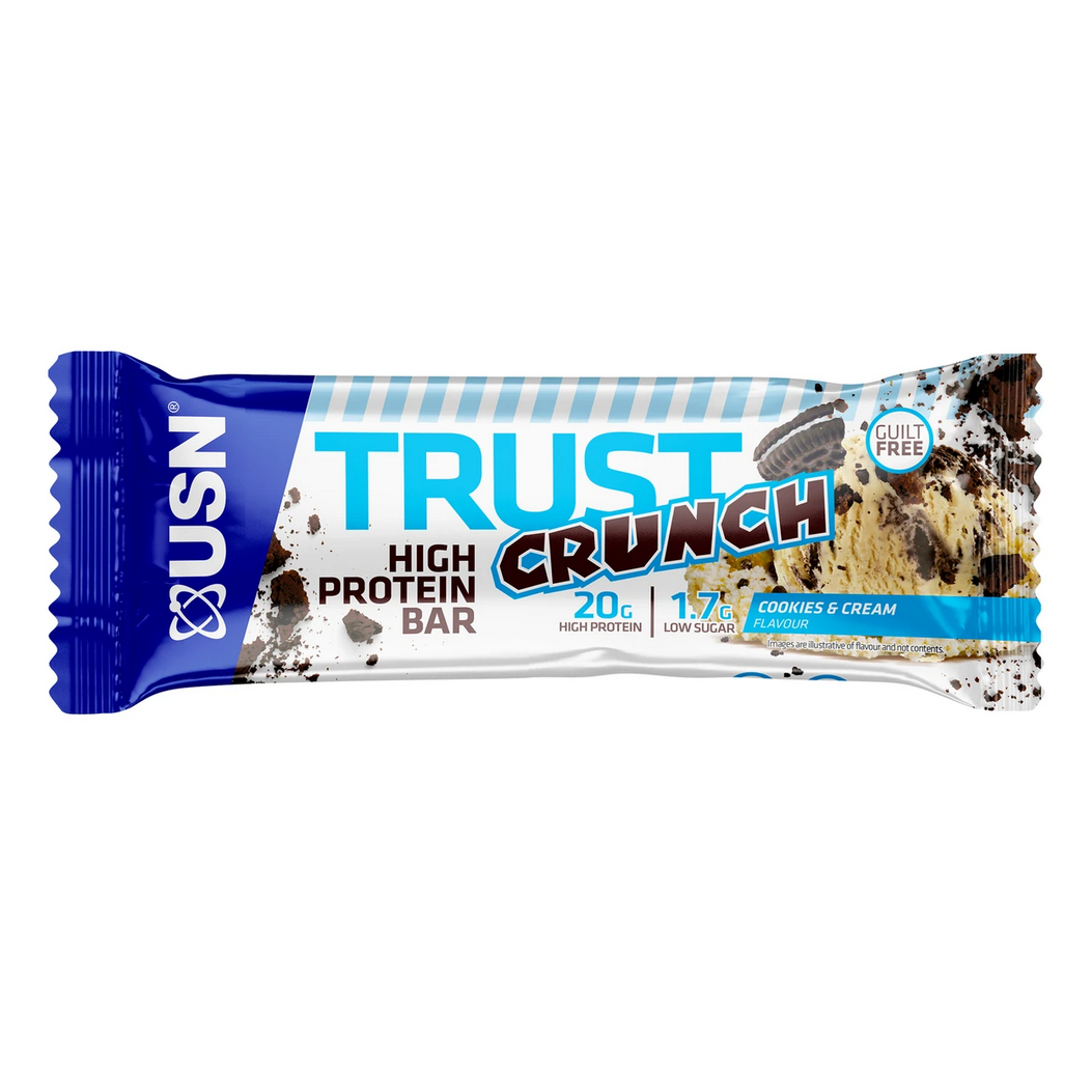 Charakteristika:Trust Crunch Bar je proteinová tyčinka, která kombinuje skvělou chuť a zdravé složení. Z jedné výživné tyčinky získáte 20g bílkovin a jen 2g cukru. Trust Crunch Bar dodá tělu potřebné bílkoviny pro Vaše tělo a svaly. Vhodný kdykoliv během dne jako chutná svačinka v 7 příchutích.